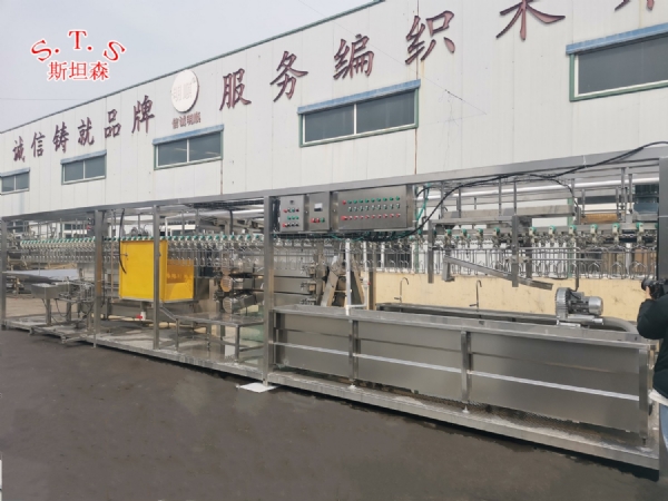 明順?biāo)固股仪萃涝琢魉€產(chǎn)品工藝介紹:1.?毛雞輸送1)卸車前應(yīng)索取產(chǎn)地動物防疫監(jiān)督機構(gòu)開具的合格證明,并臨車觀察,未見異常,證貨相符后準(zhǔn)予卸車。2)將裝有毛雞